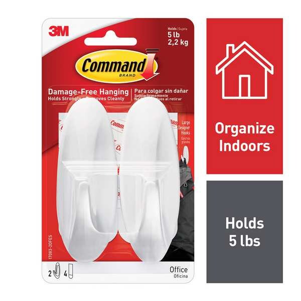 SKU G602195484Categories SafetyDescription Designer Hook, Fastening Method Adhesive Back, Points per Hook 1, Number of Hooks 2, Basic Hook Material Plastic, Hook Finish Plastic, Working Load Limit 5 lb, Hook Height 4 1/8 in, Hook Base Width 1 1/2 in, Projection 3/4 in, White, Depth 1 1/2 in, Thread Length Not Applicable, Includes (2) Hooks, (4) Strips, Mounting Command(TM) Adhesive, Package Quantity 2graingerSKU: 61UV39, mscSKU: , zoro_no: G602195484, mongo_id: 65bbe8479a749db82278288f