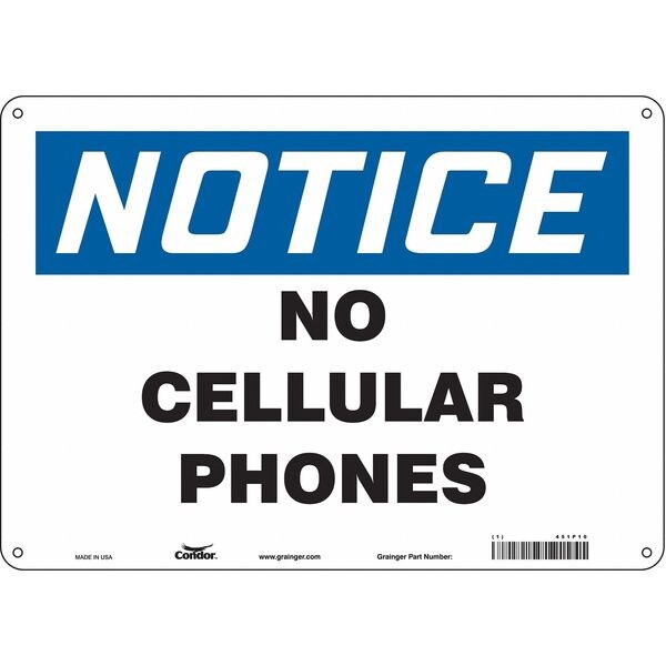 Safety Sign Cell Phone, 10 in H, 14 in W, Aluminum, Horizontal Rectangle, English, 451P10SKU G5214093Categories SafetyDescription Safety Sign Cell Phone, Horizontal Rectangle, Number of Printed Sides 1, English, Sign Legend No Cellular Phones, Sign Legend Background Color White, Sign Legend Style TextgraingerSKU: 451P10, mscSKU: , zoro_no: G5214093, mongo_id: 65bbe6753aaddbd5a902f653