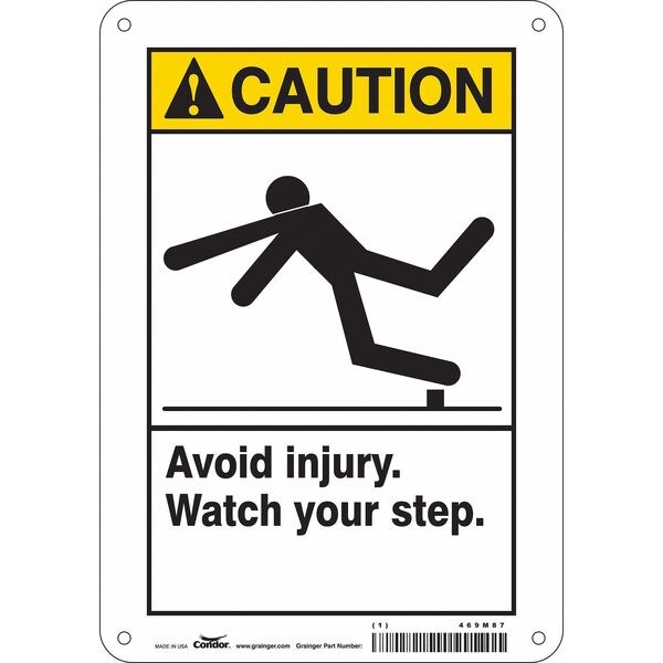 Safety Sign, 10 in Height, 7 in Width, Aluminum, Horizontal Rectangle, English, 469M87SKU G5617433Categories SafetyDescription Safety Sign, Horizontal Rectangle, Number of Printed Sides 1, English, Sign Format ANSI/OSHA Format, Sign Legend Avoid Injury. Watch Your Step., Sign Legend Background Color White, Sign Legend Style Symbol and TextgraingerSKU: 469M87, mscSKU: , zoro_no: G5617433, mongo_id: 65bbe6753aaddbd5a902f4fc