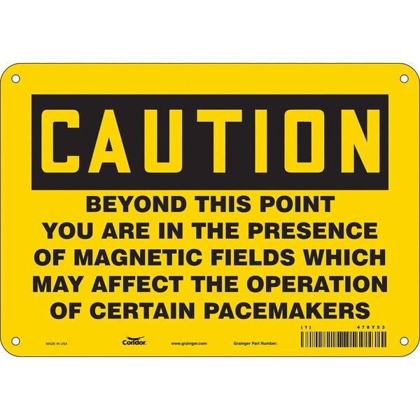 Safety Sign, 7 in Height, 10 in Width, Aluminum, Vertical Rectangle, English, 478Y53SKU G5822387Categories SafetyDescription Safety Sign, Vertical Rectangle, Number of Printed Sides 1, English, Sign Format Traditional OSHA, Sign Legend Beyond This Point You Are In The Presence Of Magnetic Fields Which May Affect The Operation Of Certain Pacemakers., Sign Legend Background Color Yellow, Sign Legend Style TextgraingerSKU: 478Y53, mscSKU: , zoro_no: G5822387, mongo_id: 65bbe6753aaddbd5a902f607
