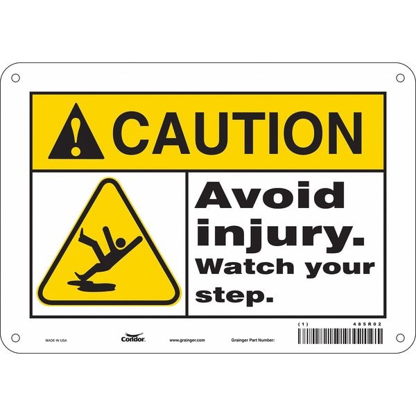 Safety Sign, 7 in Height, 10 in Width, Aluminum, Vertical Rectangle, English, 485R02SKU G6302812Categories SafetyDescription Safety Sign, Vertical Rectangle, Number of Printed Sides 1, English, Sign Format ANSI/OSHA Format, Sign Legend Avoid Injury. Watch Your Step., Sign Legend Background Color White, Sign Legend Style Symbol and TextgraingerSKU: 485R02, mscSKU: , zoro_no: G6302812, mongo_id: 65bbe6753aaddbd5a902f4bc
