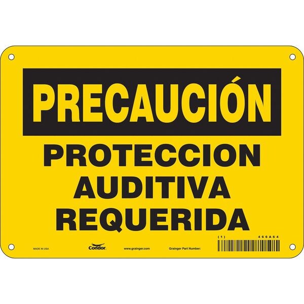 Safety Sign, 10" W, 7" H, 0.032" ThicknessSKU G5890643Categories SafetyDescription Safety Sign, Vertical Rectangle, Number of Printed Sides 1, Spanish, Sign Format Traditional OSHA, Sign Legend Proteccion Auditiva Requerida, Sign Legend Background Color Yellow, Sign Legend Style TextgraingerSKU: 466A64, mscSKU: , zoro_no: G5890643, mongo_id: 65bbe6753aaddbd5a902f3b8