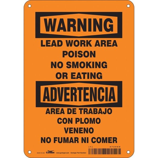 SKU G5648699Categories SafetyDescription Safety Sign, Horizontal Rectangle, Number of Printed Sides 1, English, Spanish, Sign Format Traditional OSHA, Sign Legend Lead Work Area Poison No Smoking Or Eating/Area De Trabajo Con Plomo Veneno No Fumar Ni Comer, Sign Legend Background Color Orange, Sign Legend Style TextgraingerSKU: 473V60, mscSKU: , zoro_no: G5648699, mongo_id: 65bbe6753aaddbd5a902f3da