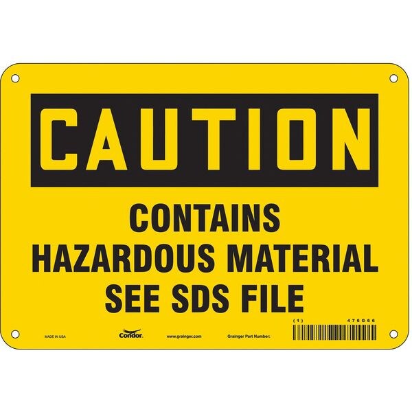 Safety Sign, 7 in Height, 10 in Width, Aluminum, Vertical Rectangle, English, 476G66SKU G5896541Categories SafetyDescription Safety Sign, Vertical Rectangle, Number of Printed Sides 1, English, Sign Format Traditional OSHA, Sign Legend Contains Hazardous Material See SDS File, Sign Legend Background Color Yellow, Sign Legend Style TextgraingerSKU: 476G66, mscSKU: , zoro_no: G5896541, mongo_id: 65bbe6753aaddbd5a902f3b2