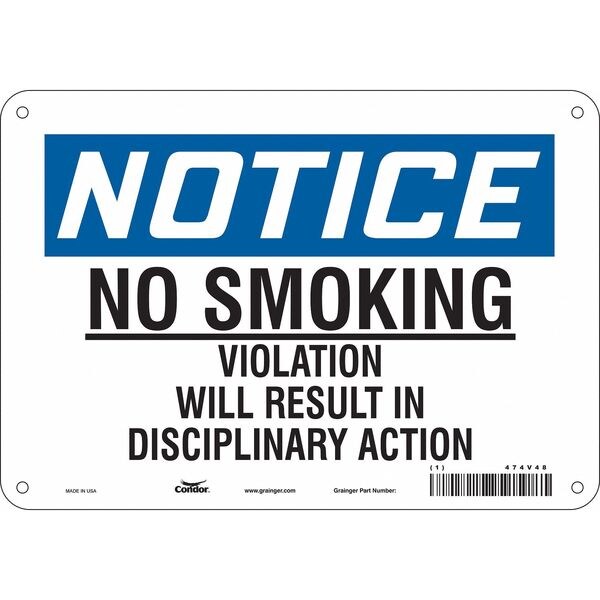 Safety Sign, 7" H, 10" W, Vertical Rectangle, English, 474V48SKU G5571358Categories SafetyDescription Safety Sign, Vertical Rectangle, Number of Printed Sides 1, English, Sign Format Traditional OSHA, Sign Legend No Smoking Violation Will Result In Disciplinary Action, Sign Legend Background Color White, Sign Legend Style TextgraingerSKU: 474V48, mscSKU: , zoro_no: G5571358, mongo_id: 65bbe6753aaddbd5a902f41d