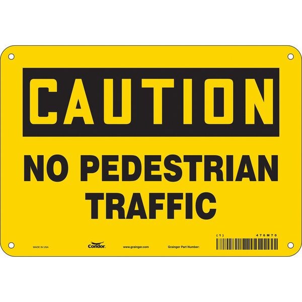 Safety Sign, 7 in Height, 10 in Width, Aluminum, Vertical Rectangle, English, 476M70SKU G5858890Categories SafetyDescription Safety Sign, Vertical Rectangle, Number of Printed Sides 1, English, Sign Format Traditional OSHA, Sign Legend No Pedestrian Traffic, Sign Legend Background Color Yellow, Sign Legend Style TextgraingerSKU: 476M70, mscSKU: , zoro_no: G5858890, mongo_id: 65bbe6753aaddbd5a902f3d9
