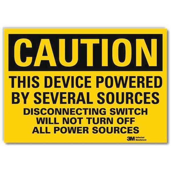 SKU G2718110Categories SafetyDescription Safety Sign, Horizontal Rectangle, Number of Printed Sides 1, English, Sign Format Traditional OSHA, Sign Legend This Device Powered By Several Sources Disconnecting Switch Will Not Turn Off All Power Sources, Sign Legend Background Color Yellow, Sign Legend Style TextgraingerSKU: 35JZ52, mscSKU: , zoro_no: G2718110, mongo_id: 65bbe6743aaddbd5a902ef2f