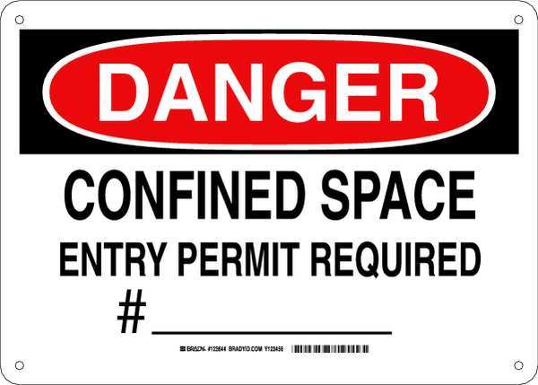 Danger Sign 10X14, Legend: Confined Space Entry Permit Required #___, 123644