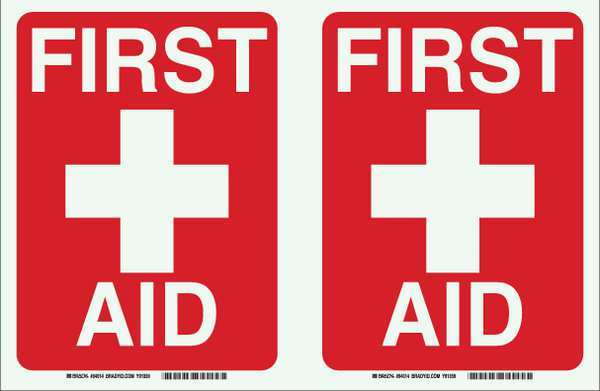 SKU G702689203Categories SafetyDescription First Aid Sign, Sign Subject Matter First Aid, Height 12 In., Width 9 In., Sign Material Plastic, Sign Mounting Style With Mounting Holes, Header No Header, Legend First Aid, Printed Language English, Sign Shape Rectangle$96.24 / eachWeb priceFirst Aid Sign, 12X9", Red on WhiteSKU G702689203Categories SafetyDescription First Aid Sign, Sign Subject Matter First Aid, Height 12 In., Width 9 In., Sign Material Plastic, Sign Mounting Style With Mounting Holes, Header No Header, Legend First Aid, Printed Language English, Sign Shape Rectangle$96.24 / eachWeb price -