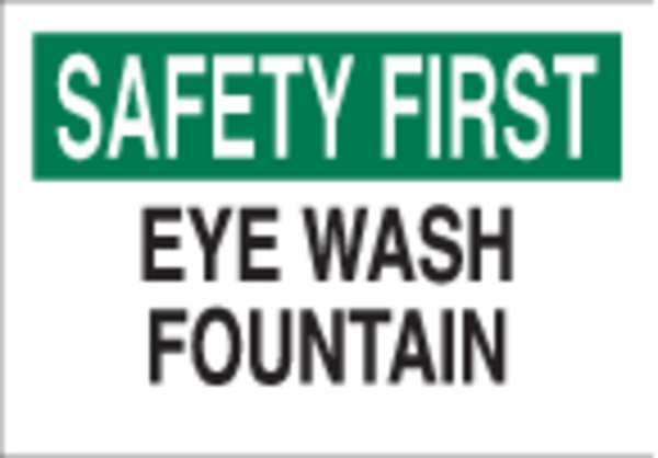 Eye Wash Sign, 7X10", GRN and BK/WHT, 85321