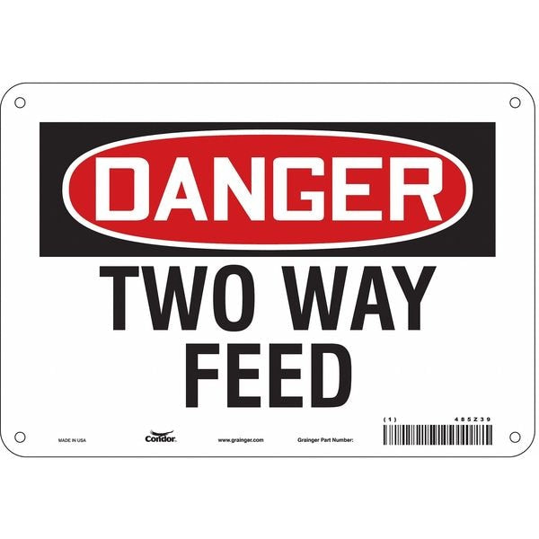 SKU G6256183Categories SafetyDescription Safety Sign, Vertical Rectangle, Number of Printed Sides 1, English, Sign Format Traditional OSHA, Sign Legend Two Way Feed, Sign Legend Background Color White, Sign Legend Style TextgraingerSKU: 485Z39, mscSKU: , zoro_no: G6256183, mongo_id: 65bbe85f9a749db82278a0e2