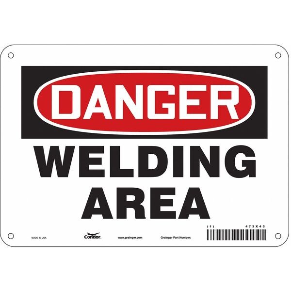 SKU G5168998Categories SafetyDescription Safety Sign, Vertical Rectangle, Number of Printed Sides 1, English, Sign Format Traditional OSHA, Sign Legend Welding Area, Sign Legend Background Color White, Sign Legend Style TextgraingerSKU: 473X45, mscSKU: , zoro_no: G5168998, mongo_id: 65bbe85f9a749db82278a009