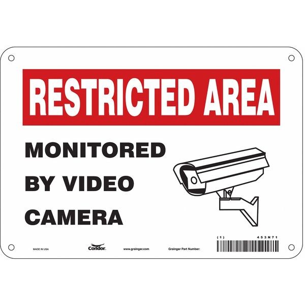 Security Sign, 7 in H, 10 in W, Aluminum, Vertical Rectangle, English, 453N71SKU G5212632Categories SafetyDescription Security Sign, Vertical Rectangle, Number of Printed Sides 1, English, Sign Legend Monitored By Video Camera, Sign Legend Background Color Red, White, Sign Legend Style Symbol and TextgraingerSKU: 453N71, mscSKU: , zoro_no: G5212632, mongo_id: 65bbe85f9a749db822789fcc