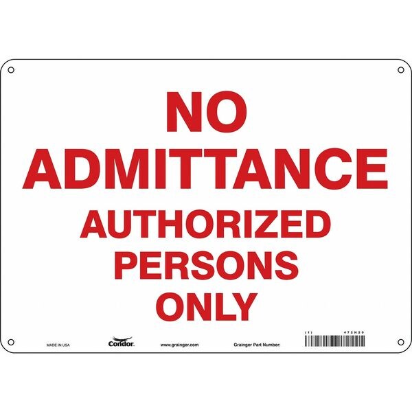 Safety Sign, 10 in Height, 14 in Width, Aluminum, Horizontal Rectangle, English, 472H20SKU G5269588Categories SafetyDescription Safety Sign, Horizontal Rectangle, Number of Printed Sides 1, English, Sign Format Other Format, Sign Legend No Admittance Authorized Persons Only, Sign Legend Background Color White, Sign Legend Style TextgraingerSKU: 472H20, mscSKU: , zoro_no: G5269588, mongo_id: 65bbe85f9a749db822789f9e