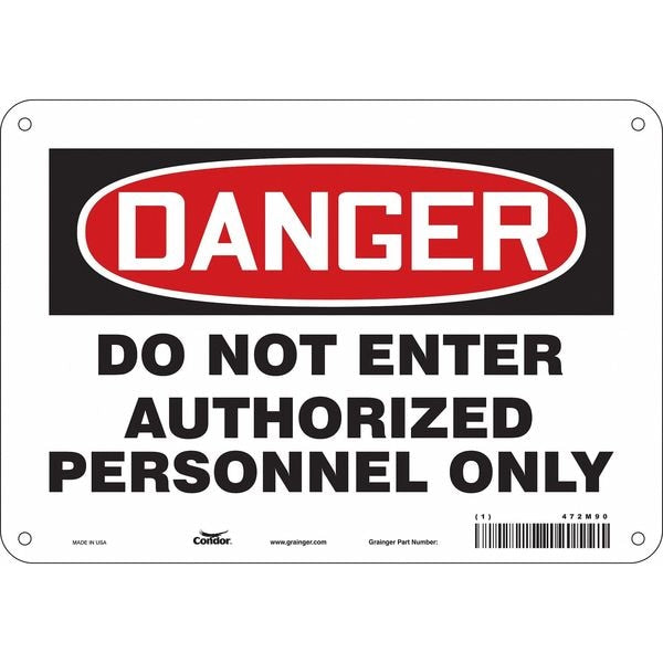 Safety Sign, 7 in Height, 10 in Width, Aluminum, Vertical Rectangle, English, 472M90SKU G5519600Categories SafetyDescription Safety Sign, Vertical Rectangle, Number of Printed Sides 1, English, Sign Format Traditional OSHA, Sign Legend Do Not Enter Authorized Personnel Only, Sign Legend Background Color White, Sign Legend Style TextgraingerSKU: 472M90, mscSKU: , zoro_no: G5519600, mongo_id: 65bbe85f9a749db822789fa8