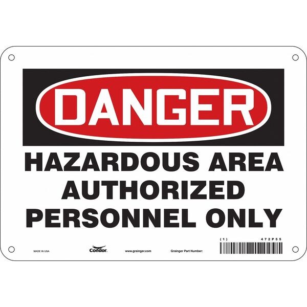 Safety Sign, 7 in Height, 10 in Width, Aluminum, Vertical Rectangle, English, 472P55SKU G5903751Categories SafetyDescription Safety Sign, Vertical Rectangle, Number of Printed Sides 1, English, Sign Format Traditional OSHA, Sign Legend Hazardous Area Authorized Personnel Only, Sign Legend Background Color White, Sign Legend Style TextgraingerSKU: 472P55, mscSKU: , zoro_no: G5903751, mongo_id: 65bbe85f9a749db822789f52