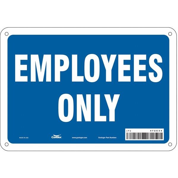 Safety Sign, 7 in Height, 10 in Width, Aluminum, Vertical Rectangle, English, 472C34SKU G5833891Categories SafetyDescription Safety Sign, Vertical Rectangle, Number of Printed Sides 1, English, Sign Format Other Format, Sign Legend Employees Only, Sign Legend Background Color Blue, Sign Legend Style TextgraingerSKU: 472C34, mscSKU: , zoro_no: G5833891, mongo_id: 65bbe85f9a749db822789f5f
