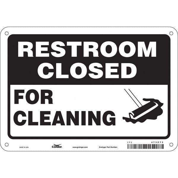 SKU G5629808Categories SafetyDescription Restroom Sign, Vertical Rectangle, Number of Printed Sides 1, English, Sign Legend For Cleaning, Sign Legend Background Color Black, White, Sign Legend Style Symbol and TextgraingerSKU: 473Z73, mscSKU: , zoro_no: G5629808, mongo_id: 65bbe85f9a749db822789f60