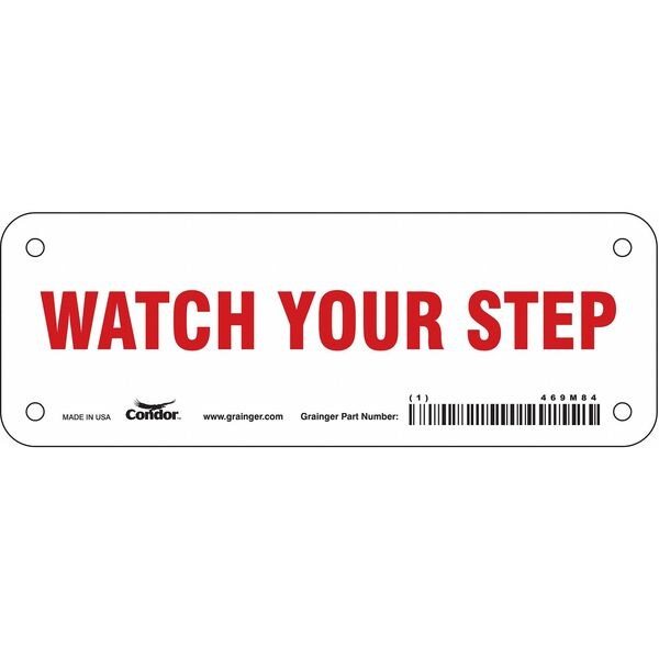 Safety Sign, 2 1/2 in Height, 7 in Width, Aluminum, Horizontal Rectangle, EnglishSKU G5157061Categories SafetyDescription Safety Sign, Horizontal Rectangle, Number of Printed Sides 1, English, Sign Format Other Format, Sign Legend Watch Your Step, Sign Legend Background Color White, Sign Legend Style TextgraingerSKU: 469M84, mscSKU: , zoro_no: G5157061, mongo_id: 65bbe85f9a749db822789f4d