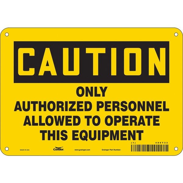 Safety Sign, 7 in Height, 10 in Width, Aluminum, Vertical Rectangle, English, 486T33SKU G6265292Categories SafetyDescription Safety Sign, Vertical Rectangle, Number of Printed Sides 1, English, Sign Format Traditional OSHA, Sign Legend Only Authorized Personnel Allowed To Operate This Equipment, Sign Legend Background Color Yellow, Sign Legend Style TextgraingerSKU: 486T33, mscSKU: , zoro_no: G6265292, mongo_id: 65bbe85f9a749db822789f36