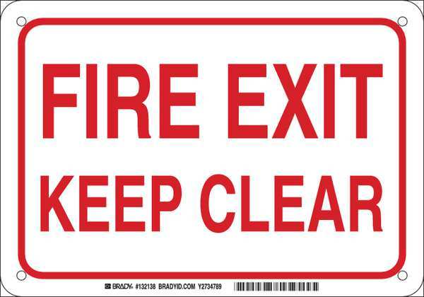 SKU G7425743Categories SafetyDescription Fire Exit Sign, Sign Subject Matter Exit and Entrance, Height 7 In., Width 10 In., Sign Material Aluminum, Sign Mounting Style With Mounting Holes, Header No Header, Legend Fire Exit Keep Clear, Printed Language English, Sign Shape Rectangle$18.56 / eachWeb priceFire Exit Sign, 7" HX10" W, AluminumSKU G7425743Categories SafetyDescription Fire Exit Sign, Sign Subject Matter Exit and Entrance, Height 7 In., Width 10 In., Sign Material Aluminum, Sign Mounting Style With Mounting Holes, Header No Header, Legend Fire Exit Keep Clear, Printed Language English, Sign Shape Rectangle$18.56 / eachWeb price -