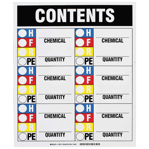 SKU G4907411Categories SafetyDescription HMIG Contents Sign, H F R Pe Chemical: Quantity:, Magnetic, Height 15 in, Width 12 in, Header Contents, Legend Style Symbol and Text, Language English, Mounting Style Magnetic, Thickness 0.025 in, Sign Shape Rectangle, Operating Temp. Range 0 Degrees to 158 Degrees F, Retroreflective Grade Not RetroreflectivegraingerSKU: 8DNL1, mscSKU: , zoro_no: G4907411, mongo_id: 65bbe84622d7a989a98e8378