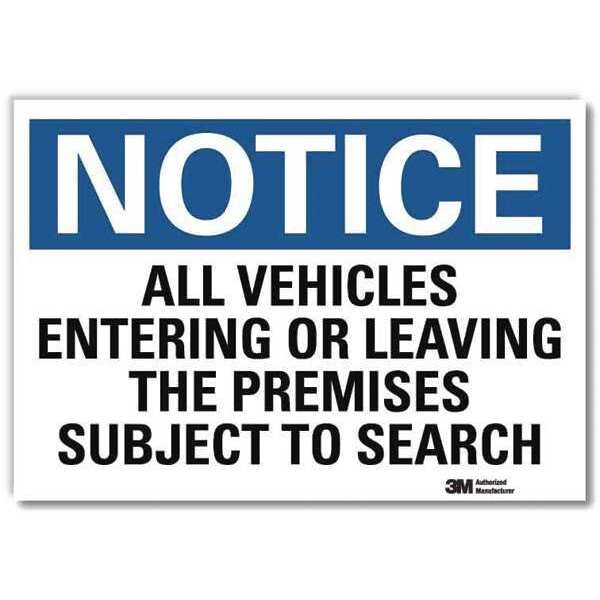 Notice Sign, 10 in H, 14 in W, Reflective Sheeting, Horizontal Rectangle, English, U5-1061-RD_14X10SKU G2764898Categories SafetyDescription Notice Sign, Horizontal Rectangle, Number of Printed Sides 1, English, Sign Format Traditional OSHA, Sign Legend All Vehicles Entering Or Leaving The Premises Subject To Search, Sign Legend Background Color White, Sign Legend Style TextgraingerSKU: 34JH84, mscSKU: , zoro_no: G2764898, mongo_id: 65bbe85f9a749db822789aa1