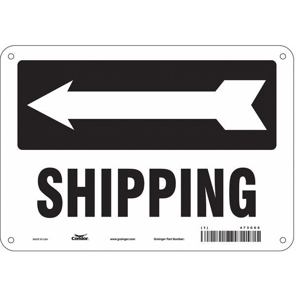 Safety Sign, 7 in Height, 10 in Width, Aluminum, Vertical Rectangle, English, 473C66SKU G5565189Categories SafetyDescription Safety Sign, Vertical Rectangle, Number of Printed Sides 1, English, Sign Format Other Format, Sign Legend Shipping (Left Arrow), Sign Legend Background Color White, Sign Legend Style Symbol and TextgraingerSKU: 473C66, mscSKU: , zoro_no: G5565189, mongo_id: 65bbe85f22d7a989a98ee0ca