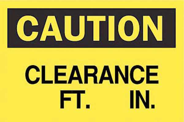 SKU G7436797Categories SafetyDescription Caution Sign, Sign Subject Matter Overhead Clearance, Height 10 In., Width 14 In., Sign Material Polyester, Header Caution, Legend Clearance Ft. In., Printed Language English, Sign Shape Rectangle$29.99 / eachWeb priceCaution Sign, 10X14, English, 85778SKU G7436797Categories SafetyDescription Caution Sign, Sign Subject Matter Overhead Clearance, Height 10 In., Width 14 In., Sign Material Polyester, Header Caution, Legend Clearance Ft. In., Printed Language English, Sign Shape Rectangle$29.99 / eachWeb price