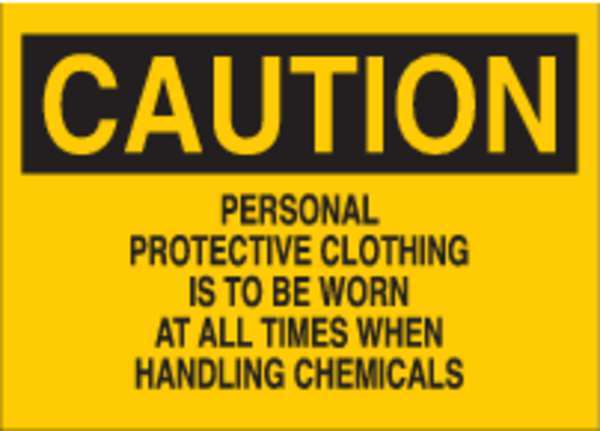 SKU G7410361Categories SafetyDescription Caution Sign, Sign Subject Matter Personal Protection, Height 10 in, Width 14 in, Sign Material Plastic, Header Caution, Legend Personal Protective Clothing Is To Be Worn At All Times When Handling Chemicals, Printed Language English, Sign Shape Rectangle$17.49 / eachWeb priceCaution Sign, 10X14", BK/YEL, ENG, Text, 22285SKU G7410361Categories SafetyDescription Caution Sign, Sign Subject Matter Personal Protection, Height 10 in, Width 14 in, Sign Material Plastic, Header Caution, Legend Personal Protective Clothing Is To Be Worn At All Times When Handling Chemicals, Printed Language English, Sign Shape Rectangle$17.49 / eachWeb price -
