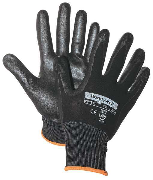 Nitrile Coated Gloves, Palm Coverage, Black, L, PR