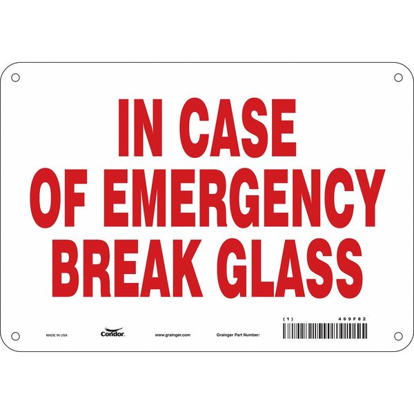 $18.74 / eachWeb priceSafety Sign, 10" W, 7" H, 0.032" ThicknessSKU G5562623Categories SafetyDescription SAFETY SIGN FIRE AND EMERGENCY, Vertical Rectangle, Number of Printed Sides 1, English, Sign Format Other Format, Sign Legend In Case Of Emergency Break Glass, Sign Legend Background Color White, Sign Legend Style TextgraingerSKU: 469F82, mscSKU: , zoro_no: G5562623, mongo_id: 65bbe7da9a749db82275efe3