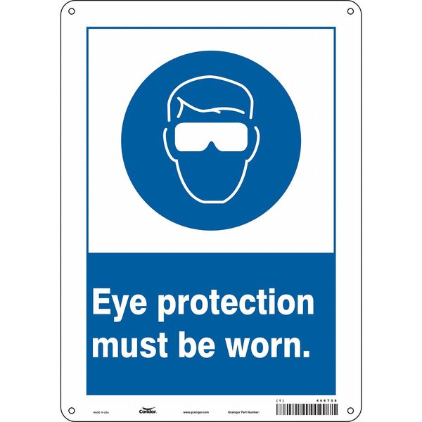 $25.36 / eachWeb priceSafety Sign, 14 in Height, 10 in Width, Aluminum, Vertical Rectangle, English, 466T58SKU G5641872Categories SafetyDescription Safety Sign, Vertical Rectangle, Number of Printed Sides 1, English, Sign Format Other Format, Sign Legend Eye Protection Must Be Worn., Sign Legend Background Color Blue, White, Sign Legend Style Symbol and TextgraingerSKU: 466T58, mscSKU: , zoro_no: G5641872, mongo_id: 65bbe7da9a749db82275f002