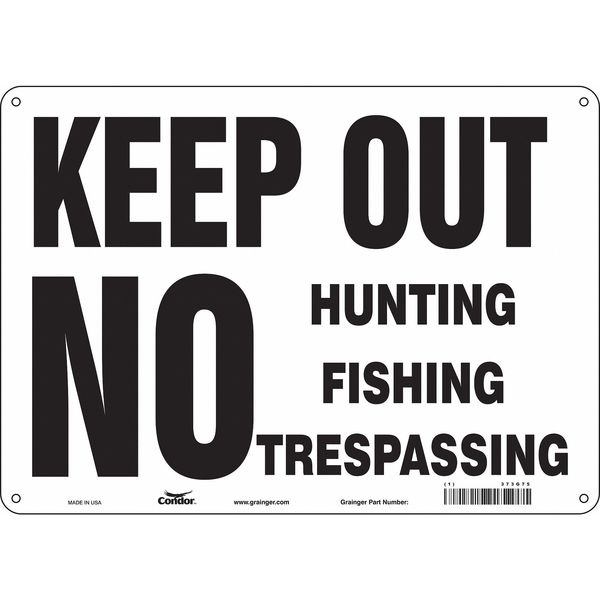 SKU G5620242Categories SafetyDescription Safety Sign, Horizontal Rectangle, Number of Printed Sides 1, English, Sign Format Other Format, Sign Legend Keep Out No Hunting Fishing Trespassing, Sign Legend Background Color White, Sign Legend Style TextgraingerSKU: 473G75, mscSKU: , zoro_no: G5620242, mongo_id: 65bbe7da9a749db82275f0c4