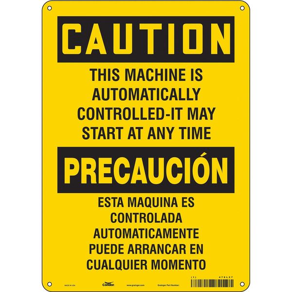 $11.94 / eachWeb priceSafety Sign, 14 in Height, 10 in Width, Polyethylene, Vertical Rectangle, English, Spanish, 478L27SKU G5825430Categories SafetyDescription Safety Sign, Vertical Rectangle, Number of Printed Sides 1, English, Spanish, Sign Format Traditional OSHA, Sign Legend This Machine Is Automatically Controlled-It May Start At Any Time/Esta Maquina Es Controlada Automaticamente Puede Arrancar En Cualquier Momento, Sign Legend Background Color Yellow, Sign Legend Style TextgraingerSKU: 478L27, mscSKU: , zoro_no: G5825430, mongo_id: 65bbe7da9a749db82275f09e