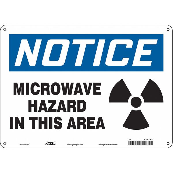 Safety Sign Radiofrequency/Microwave, 10 in H, 14 in W, Aluminum, Horizontal Rectangle, 451X89