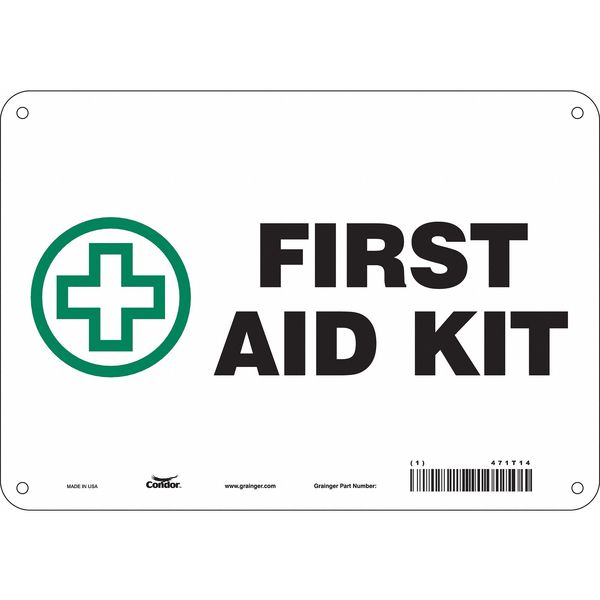 $18.74 / eachWeb priceFirst Aid Sign, 10" W x 7" H, 0.032" Thick, 471T14SKU G5851933Categories SafetyDescription First Aid Sign, Vertical Rectangle, Number of Printed Sides 1, English, Sign Legend First Aid Kit, Sign Legend Background Color White, Sign Legend Style Symbol and TextgraingerSKU: 471T14, mscSKU: , zoro_no: G5851933, mongo_id: 65bbe7da9a749db82275ef69
