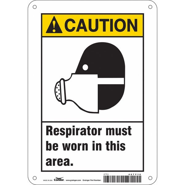 $14.74 / eachWeb priceSafety Sign, 10 in Height, 7 in Width, Aluminum, Horizontal Rectangle, English, 467Y16SKU G5558758Categories SafetyDescription Safety Sign, Horizontal Rectangle, Number of Printed Sides 1, English, Sign Format ANSI/OSHA Format, Sign Legend Respirators Must Be Worn In This Area, Sign Legend Background Color White, Sign Legend Style Symbol and TextgraingerSKU: 467Y16, mscSKU: , zoro_no: G5558758, mongo_id: 65bbe7da9a749db82275ef62