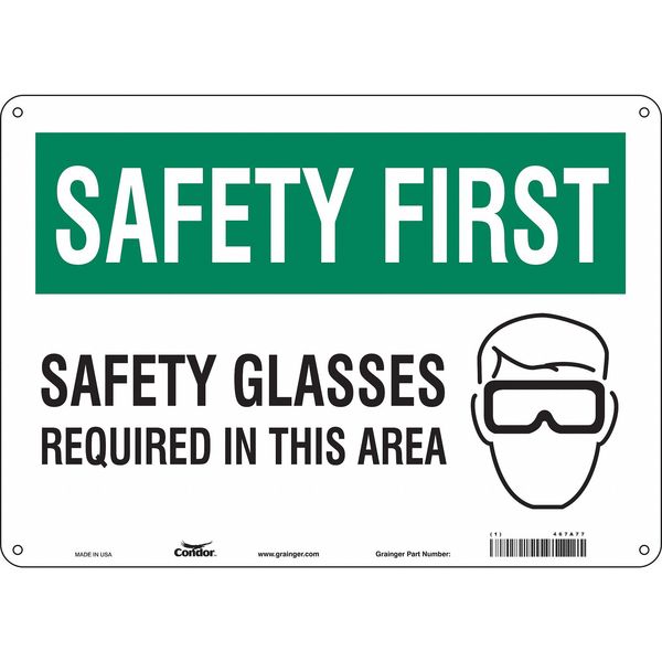 $25.19 / eachWeb priceSafety Sign, 10 in Height, 14 in Width, Aluminum, Horizontal Rectangle, English, 467A77SKU G5228093Categories SafetyDescription Safety Sign, Horizontal Rectangle, Number of Printed Sides 1, English, Sign Format Traditional OSHA, Sign Legend Safety Glasses Required In This Area, Sign Legend Background Color White, Sign Legend Style Symbol and TextgraingerSKU: 467A77, mscSKU: , zoro_no: G5228093, mongo_id: 65bbe7da9a749db82275efa6