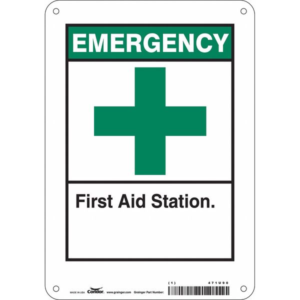 $15.69 / eachWeb priceFirst Aid Sign, 7" W x 10" H, 0.032" Thick, 471U90SKU G5215557Categories SafetyDescription First Aid Sign, Horizontal Rectangle, Number of Printed Sides 1, English, Sign Legend First Aid Station., Sign Legend Background Color Green, White, Sign Legend Style Symbol and TextgraingerSKU: 471U90, mscSKU: , zoro_no: G5215557, mongo_id: 65bbe7da9a749db82275eff0