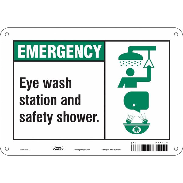 $10.36 / eachWeb priceSafety Sign, 7 in Height, 10 in Width, Polyethylene, Vertical Rectangle, English, 471C34SKU G5058343Categories SafetyDescription Safety Sign, Vertical Rectangle, Number of Printed Sides 1, English, Sign Legend Eye Wash Station And Safety Shower., Sign Legend Background Color Green, White, Sign Legend Style Symbol and TextgraingerSKU: 471C34, mscSKU: , zoro_no: G5058343, mongo_id: 65bbe7da9a749db82275ef61