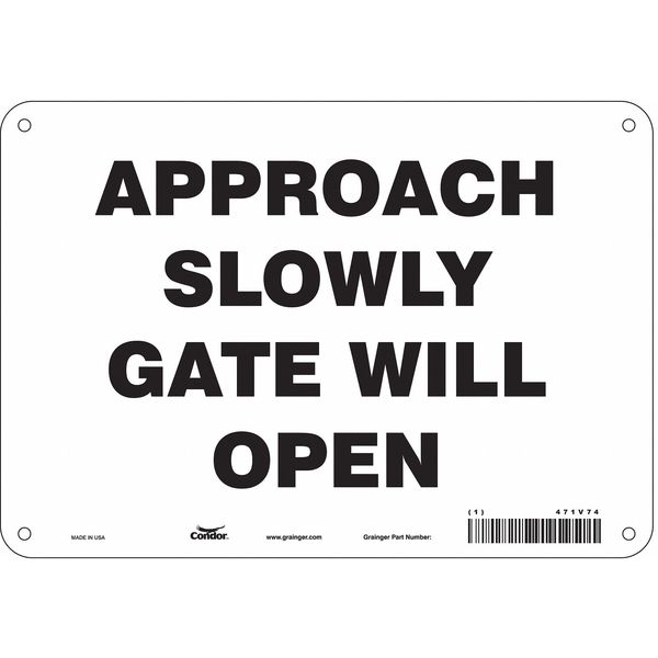 $18.74 / eachWeb priceSafety Sign, 7 in Height, 10 in Width, Aluminum, Vertical Rectangle, English, 471V74SKU G5213457Categories SafetyDescription Safety Sign, Vertical Rectangle, Number of Printed Sides 1, English, Sign Format Other Format, Sign Legend Approach Slowly Gate Will Open, Sign Legend Background Color White, Sign Legend Style TextgraingerSKU: 471V74, mscSKU: , zoro_no: G5213457, mongo_id: 65bbe7da9a749db82275f06e