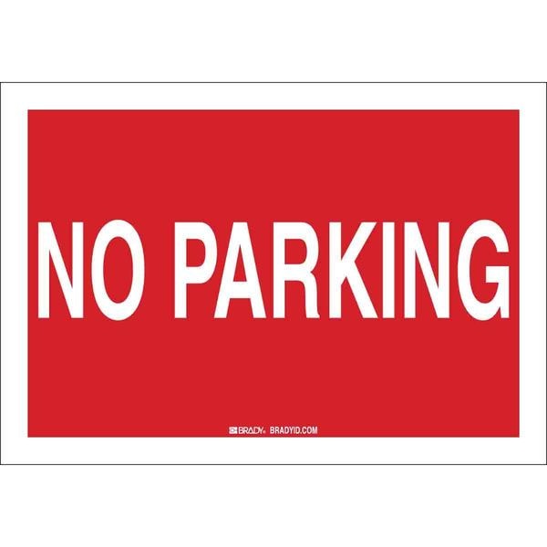No Parking Sign, 10" W, 7" H, English, Plastic, Red, White