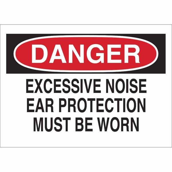 Sign, Danger, 10X14", Red/Bk /Wht, Eng, Legend: Excessive Noise Ear Protection Must Be Worn