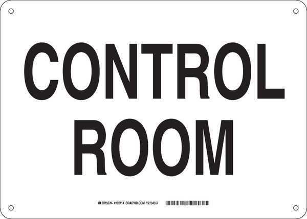 Door Sign, 10" HX14" W, Plastic, Legend: Control Room, 132114