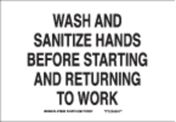 SKU G7419078Categories SafetyDescription Caution Sign, Sign Subject Matter Wash Hands, Height 7 In., Width 10 In., Sign Material Plastic, Header No Header, Legend Wash And Sanitize Hands Before Starting And Returning To Work, Printed Language English, Sign Shape Rectangle$11.94 / eachWeb priceCaution Sign, 7X10", Bk/Wht, Eng, Text, 25250SKU G7419078Categories SafetyDescription Caution Sign, Sign Subject Matter Wash Hands, Height 7 In., Width 10 In., Sign Material Plastic, Header No Header, Legend Wash And Sanitize Hands Before Starting And Returning To Work, Printed Language English, Sign Shape Rectangle$11.94 / eachWeb price -