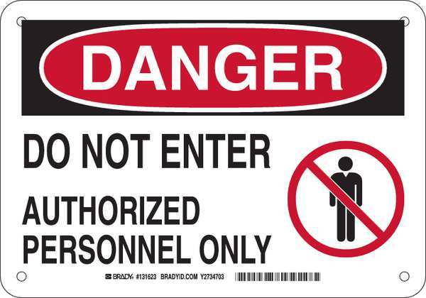 SKU G7359760Categories SafetyDescription Danger Sign, Sign Subject Matter Authorized Personnel and Restricted Access, Height 7 in, Width 10 in, Sign Material Aluminum, Sign Mounting Style With Mounting Holes, Header Danger, Legend Do Not Enter Authorized Personnel Only, Printed Language English, Sign Shape Rectangle$18.56 / eachWeb priceDanger Sign, 7"HX10"W, Aluminum, Legend: Do Not Enter Authorized Personnel OnlySKU G7359760Categories SafetyDescription Danger Sign, Sign Subject Matter Authorized Personnel and Restricted Access, Height 7 in, Width 10 in, Sign Material Aluminum, Sign Mounting Style With Mounting Holes, Header Danger, Legend Do Not Enter Authorized Personnel Only, Printed Language English, Sign Shape Rectangle$18.56 / eachWeb price