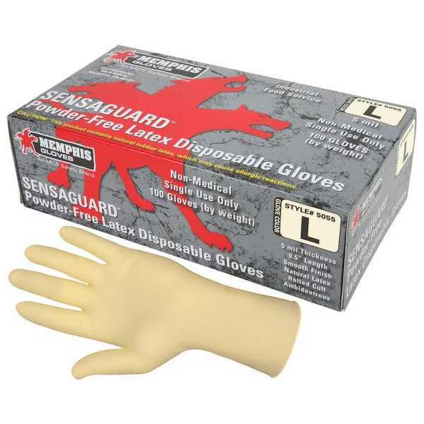 Disposable Gloves, Natural Rubber Latex, Powder Free, Natural, XL, 100 PKSKU G7267963Categories SafetyDescription Disposable Gloves, Acceptable Quality Level (AQL) 4, Anti-Static No, Color Beige, Disposable Glove Type Food-Grade, General Purpose, Latex-Free No, Length 9 3/4 in, Material Latex, Palm Thickness 5 mil, Powdered/Powder-Free Powder-Free, Silicone-Free No, Sterile/Non-Sterile Non-Sterile, Texture Smooth, Accelerator-Free No, Glove Treatments Powder-Free, Series SensaGuard 5055, Size- Alpha XL, Size - Numeric 10, Tested for Chemotherapy Drugs No, Tested for Fentanyl Protection NograingerSKU: , mscSKU: 71299655, zoro_no: G7267963, mongo_id: 65bbe82222d7a989a98db7ab