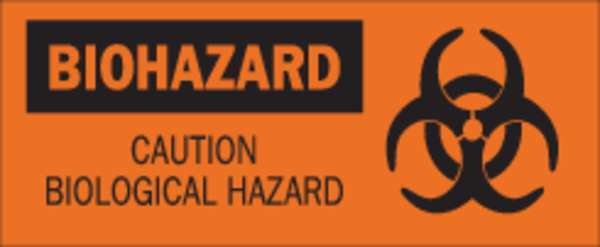 Caution Biohazard Sign, 7 in Height, 17 in Width, Fiberglass, Rectangle, English