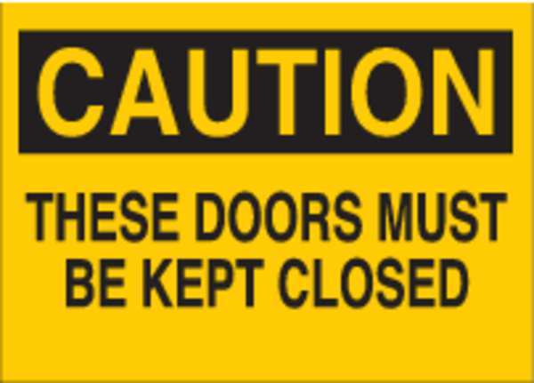 Caution Sign, 7X10", BK/YEL, ENG, Text, Legend: These Doors Must Be Kept Closed, 22521